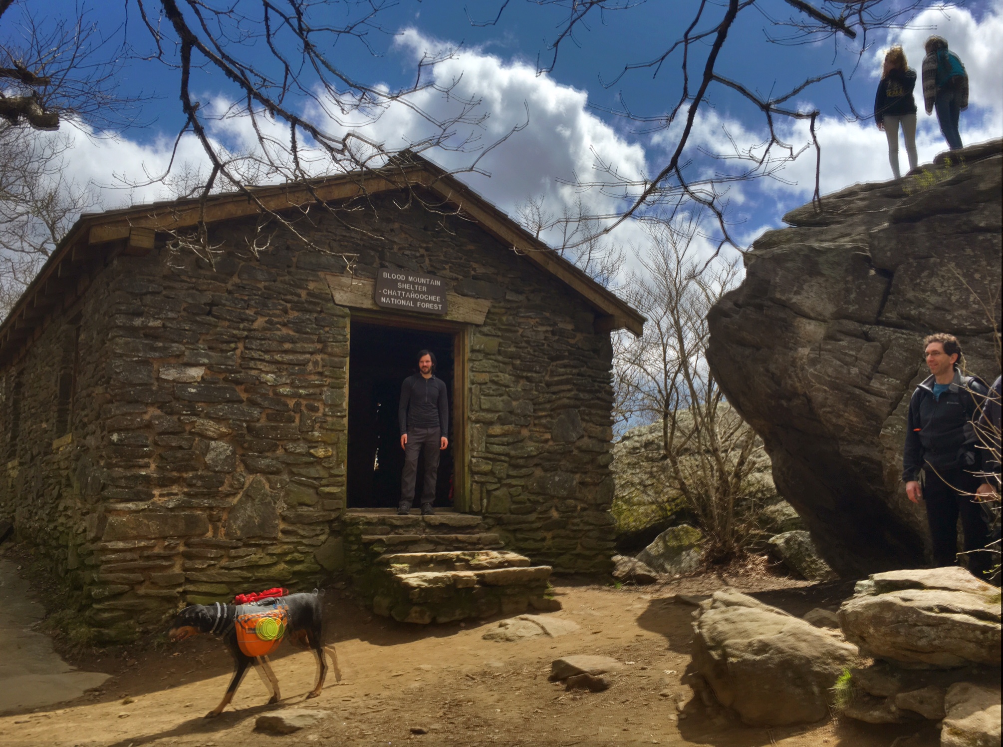 This is the awesome patio/overlook at Neels Gap. There is an outfitter store behind us that sells gear and hiker food and sends home tons (literally) of unwanted gear since so many people over pack.