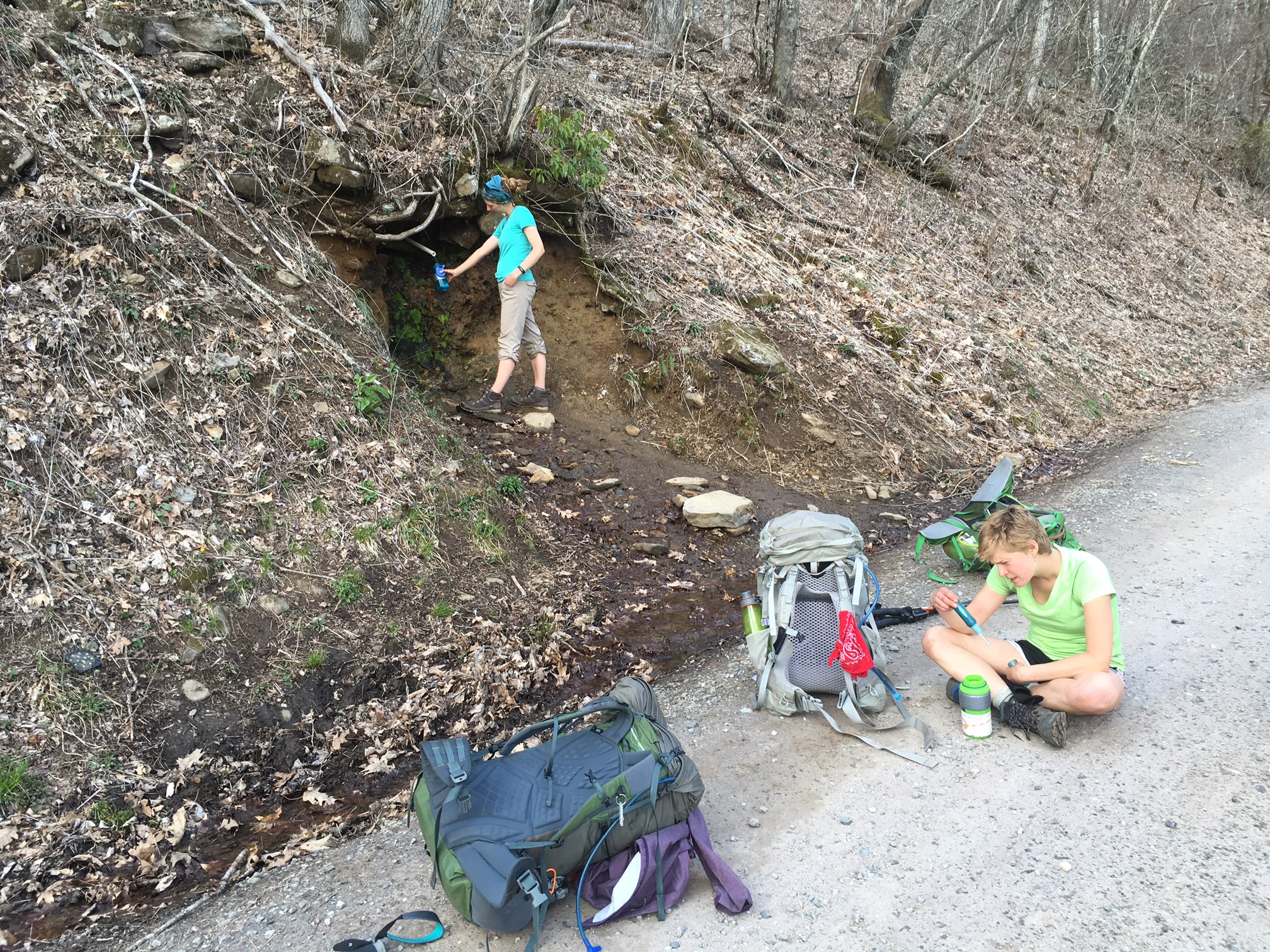 These were my trail friends for the day Squeak and Weasel (aka Squeasel). They are from Longmont, CO and Tuscon. They helped me pass the miles for the second half of my longest day so far. Here they are filling up from a natural spring someone was kind enough to pipe out to us along the trail: