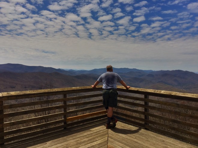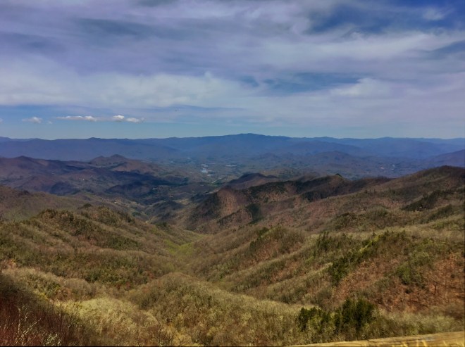 The view from 5000′ with Great Smoky Mtn NP on the horizon.