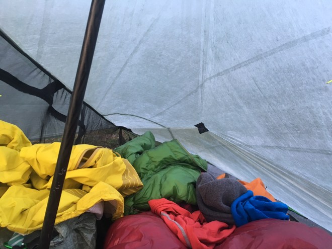 This is the gear explosion inside my tent most mornings. These cold temps exacerbate this problem as almost every piece of gear is being worn or packed while trying to stay inside my sleeping bag as long as possible.