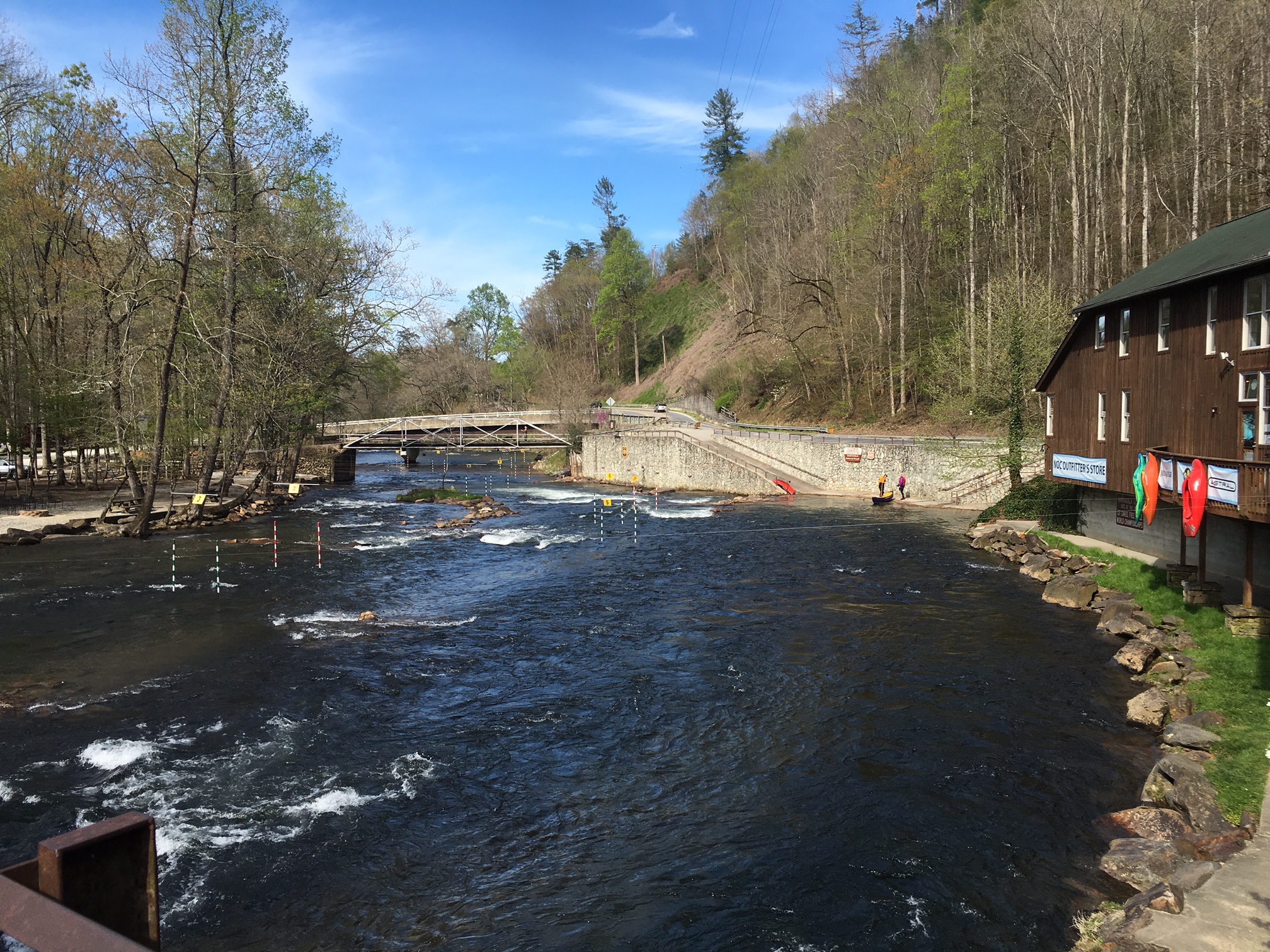 After a 3000′ descent (miles 10-17 for the day) I arrived at the the famous N.O.C., the Nantahala Outdoor Center, an East Coast epicenter for kayaking and rafting. Plus they have real food, a small general store, laundry and cabins for rent.
