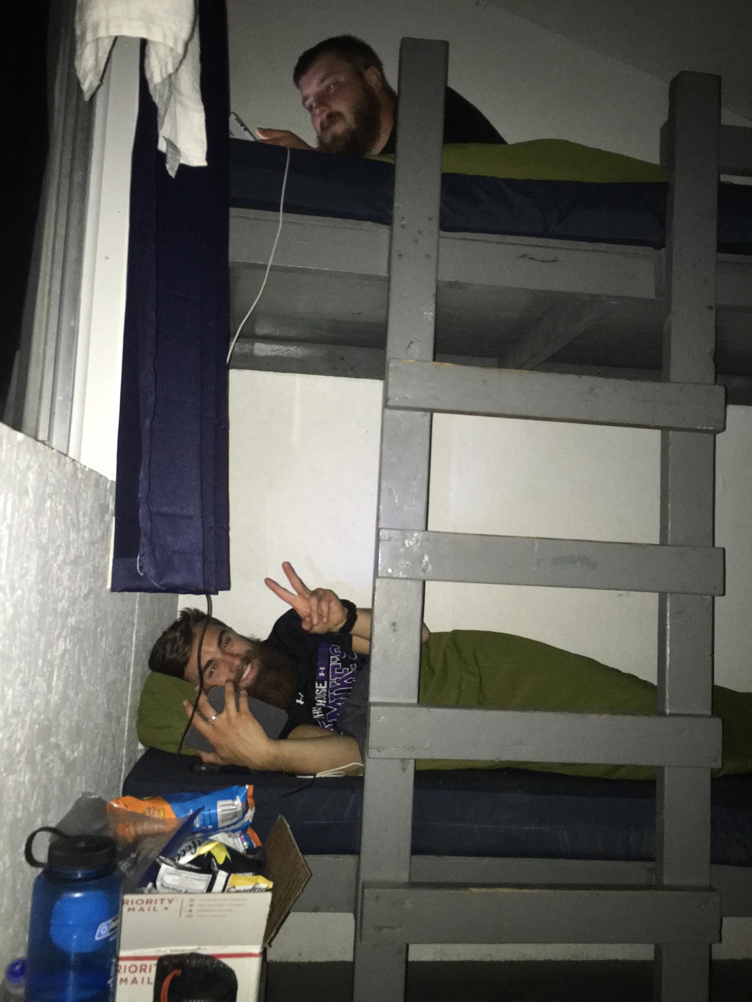 This is PBR’s and Grizzly Adams from Otis, MA. getting settee in for the night. I’ve been leapfrogging with them on the trail the last several days and we shared a bunkroom tonight. It was fantastic getting a hot shower and not having to wear a hat to bed.