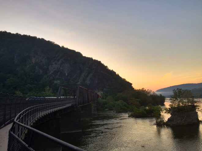 Although flat, the 3 miles along the C&O canal path is kind of boring and terribly hot if done during the heat of the day…. A pretty view at sunrise at least.