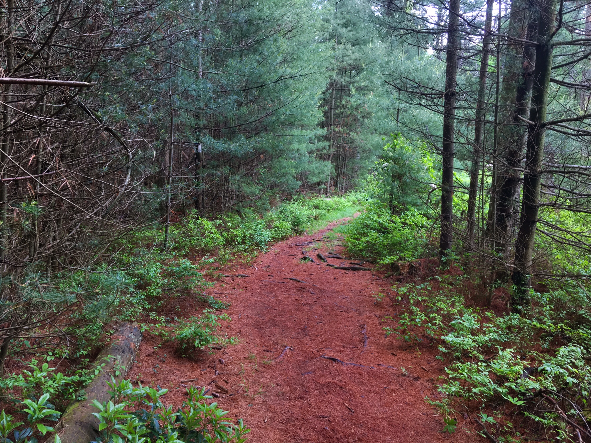 After yesterday’s rocks (and more this AM) this was a welcome stretch of soft pine needles to end the day on.