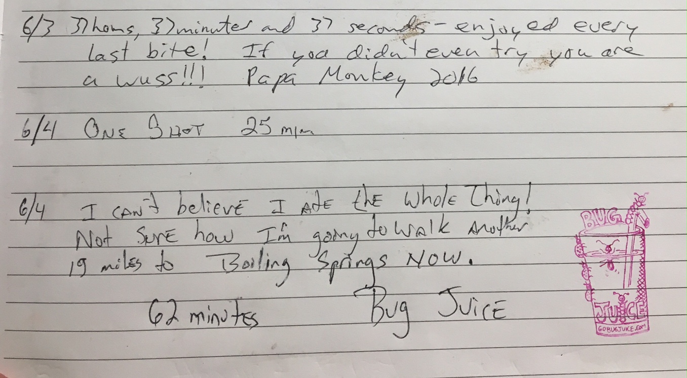 The 1/2-gallon challenge log book had some impressive times. One Shot did it in a very competitive 25 minutes! (He’d be psyched if he could do his Ironman swim leg that fast)