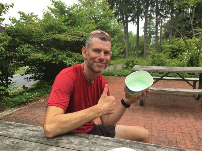 Not quite..those containers don’t quite have 1/2 a gallon like they used to. So we had to eat another pint to finish things out. That’s a lot of ice cream especially at 8am! Took me an hour to recover before I could start hiking again.