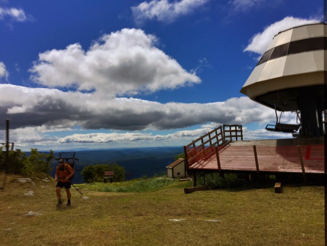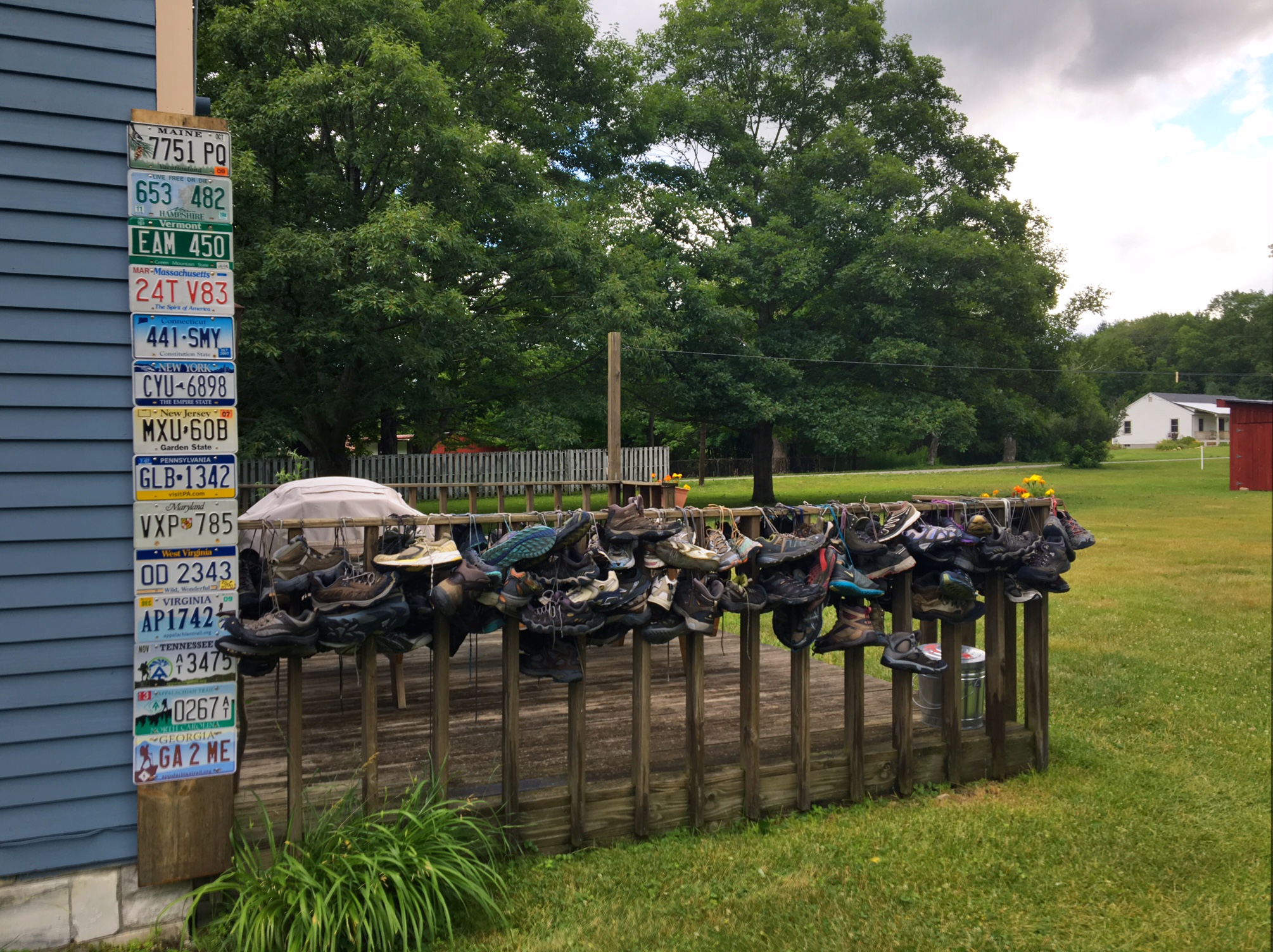 An impressive collection of discarded hiking shoes at the Green Mtn. House…plus, Jeff has license plates from all 14 AT-states.