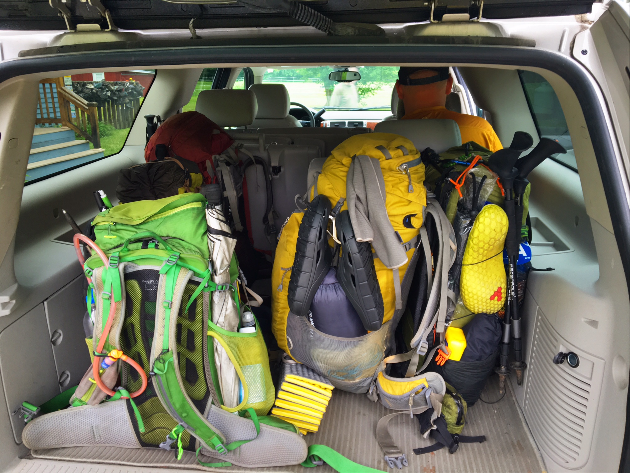 Loading up the Suburban for the 9am shuttle to the trailhead.