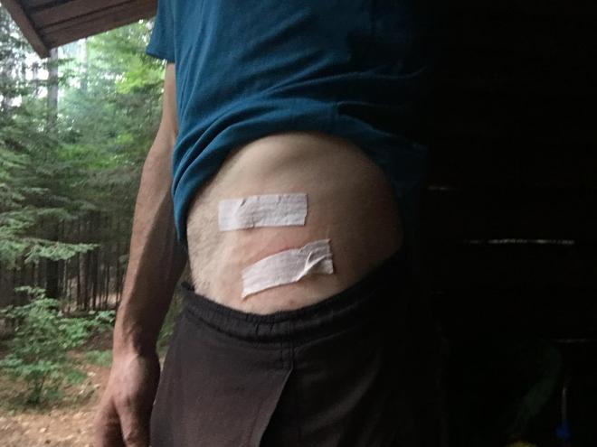 Too much sweaty/humid weather gave me diaper rash on my hip bones from rubbing on my packs belt. Some medical tape seems to help.