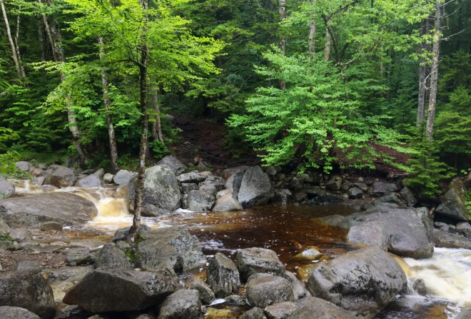 If you zoom in on the spindly tree in the middle of the river you will see a white blaze. I’m not sure what they were thinking crossing here! I crossed just up stream and managed to stay upright. My feet were already soaked from all the puddles and muck I’d hiked through earlier so this was a good chance to clean the boots off.