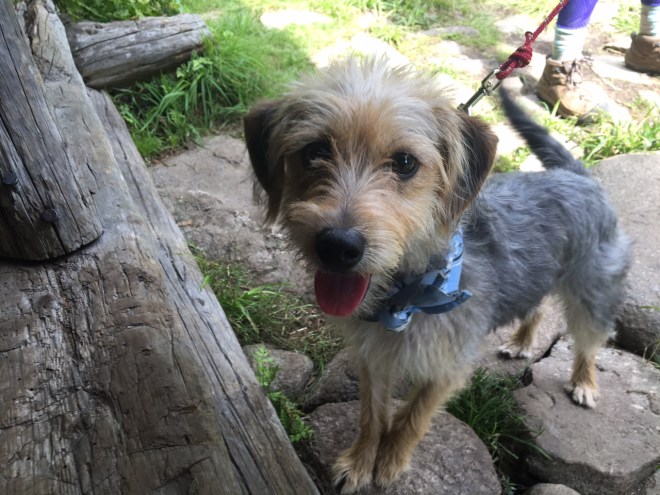 This is Rita the 6 month old terrier mix on her first backpacking trip.