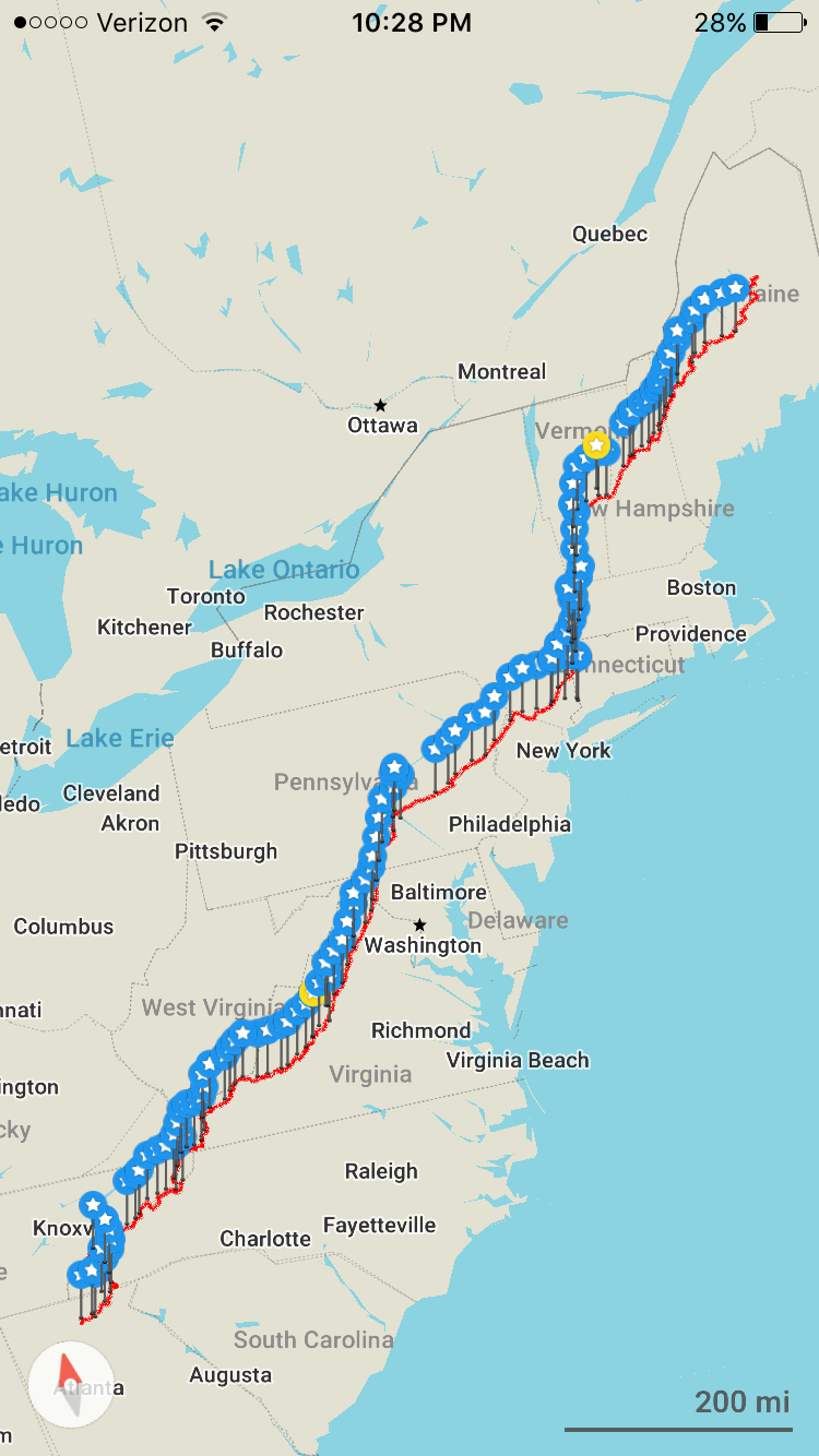 The Blue Dots mark all the places I’ve stayed over the last 110 days…kind of hard for me to even process.