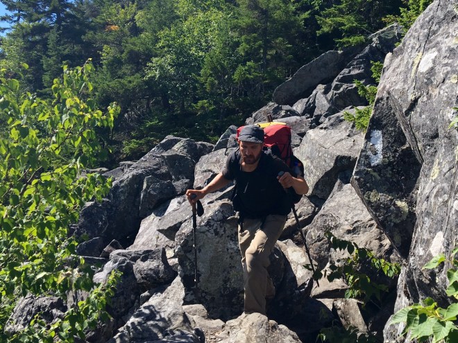 This is Zig negotiating the Chairback Mtn rock scramble. The Southbounders were nice enough to warn us about this impending obstacle…I didn’t have the heart to tell them to buckle their seat belts for what’s coming in the next week.