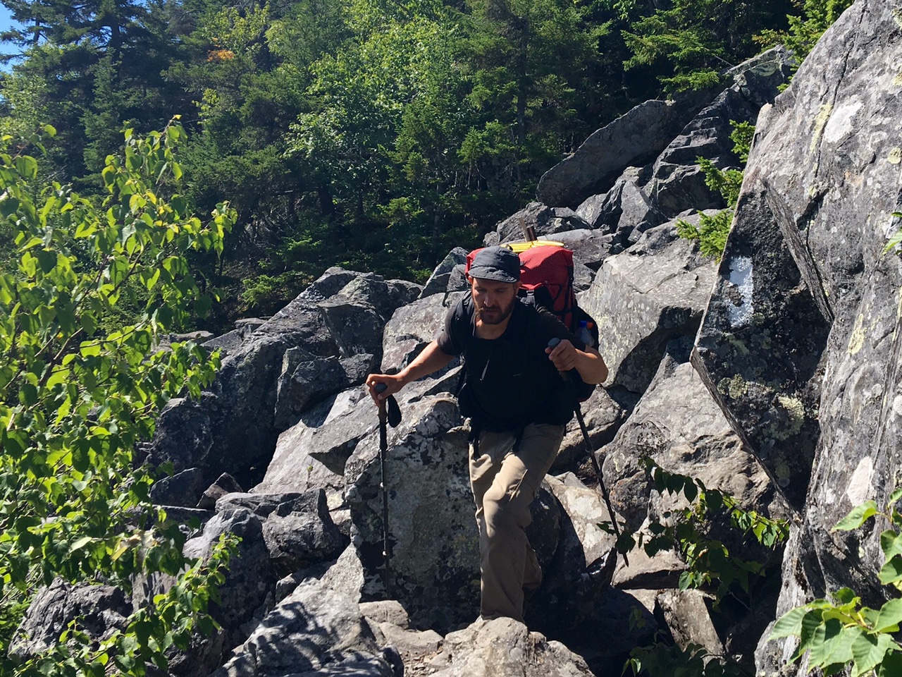 This is Zig negotiating the Chairback Mtn rock scramble. The Southbounders were nice enough to warn us about this impending obstacle…I didn’t have the heart to tell them to buckle their seat belts for what’s coming in the next week.