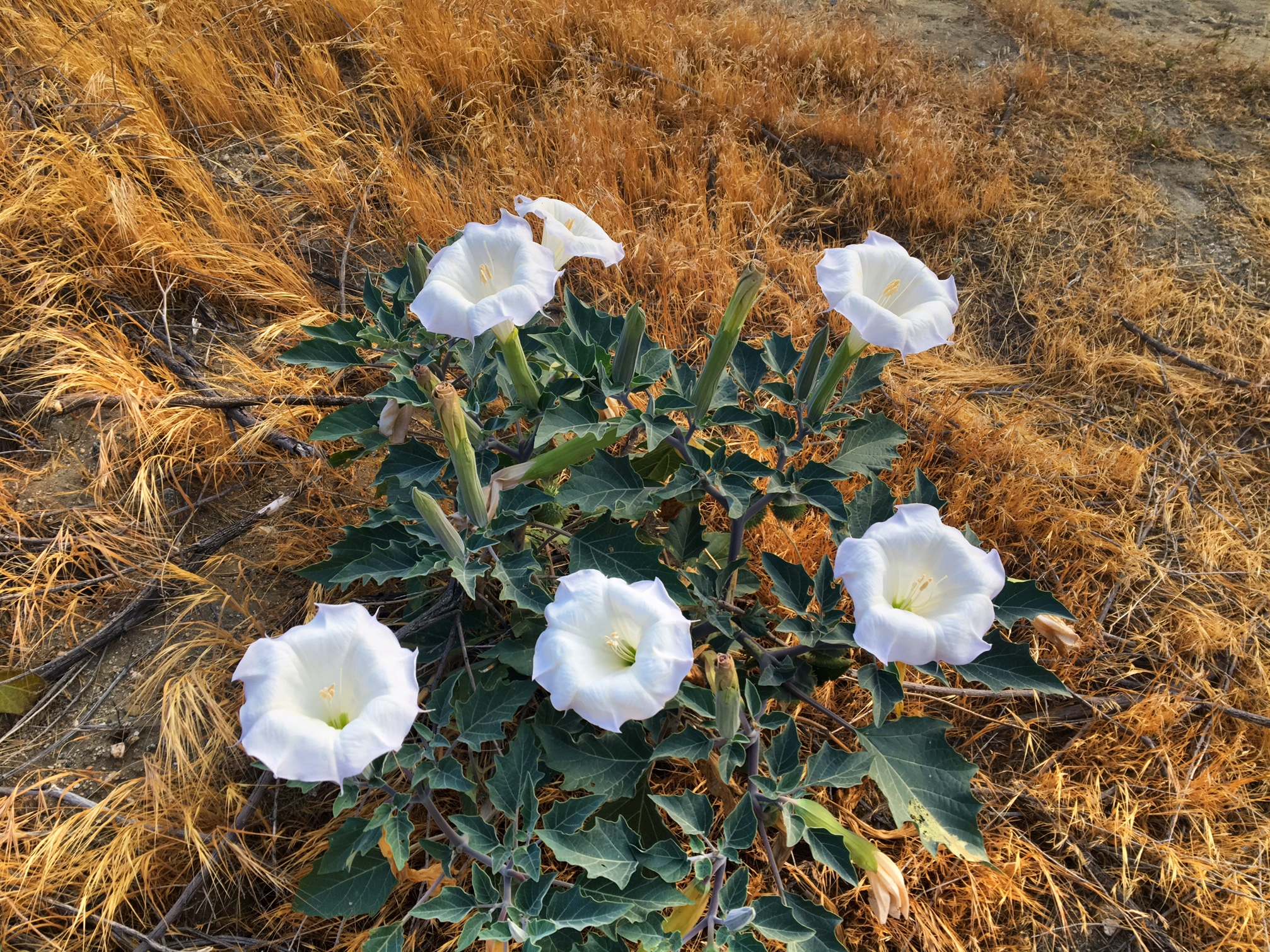 Not sure what kind of flowers these are that I see often. The blooms are large (4-5″ across)…desert Lilly?