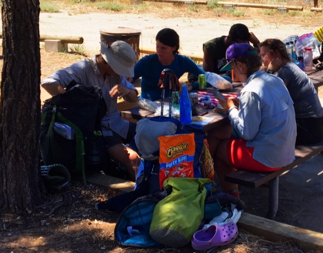 Here are some hikers enjoying a siesta playing Yahtzee and eating Cheetos (a hiker favorite).