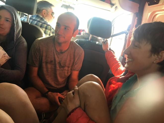 A small cafe 5 miles away comes by every hour and picks hikers up in their van.