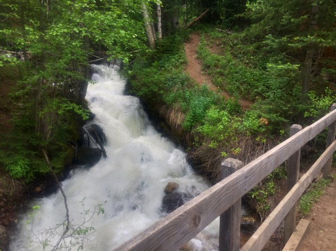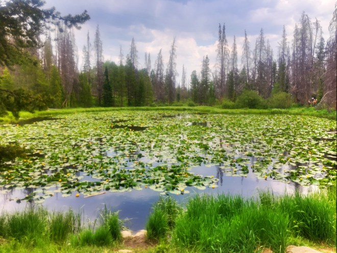 The whitewater creek in the first pic is Meadow Creek on the way to Lilly Pad lake (above). Notice how it has a bridge!…so civilized!