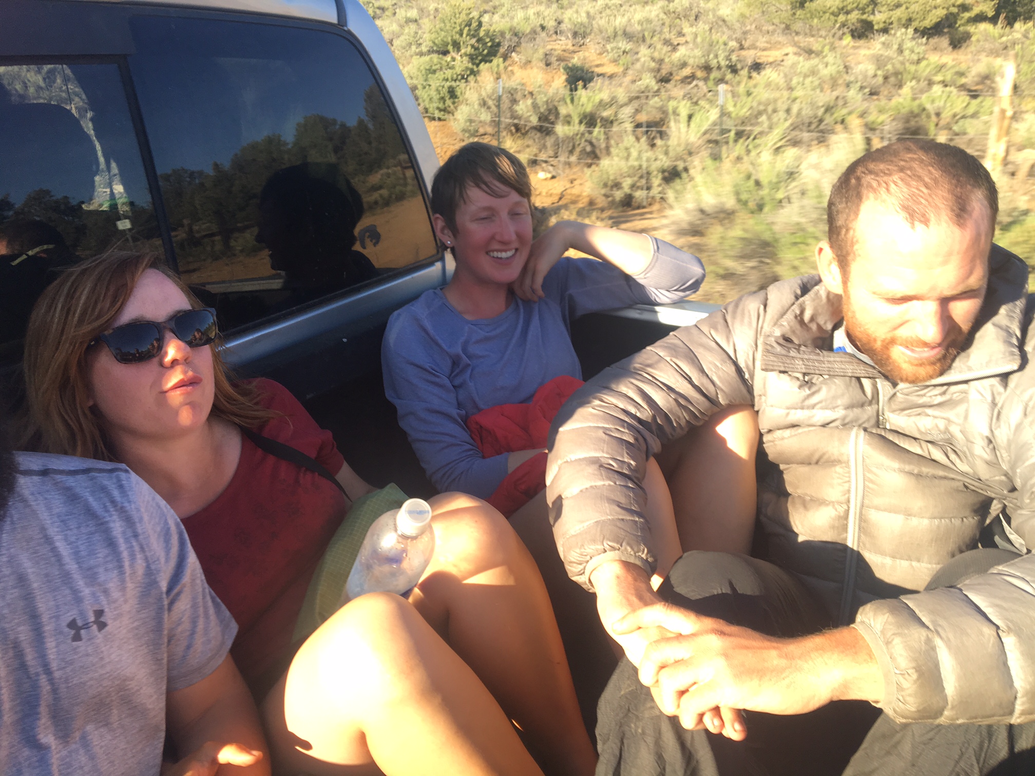The only other thing nearby is a bar/grill called Grumpy Bears, about 3 miles away. Here are Bronco and Loco in the back of a pickup hitching a ride.