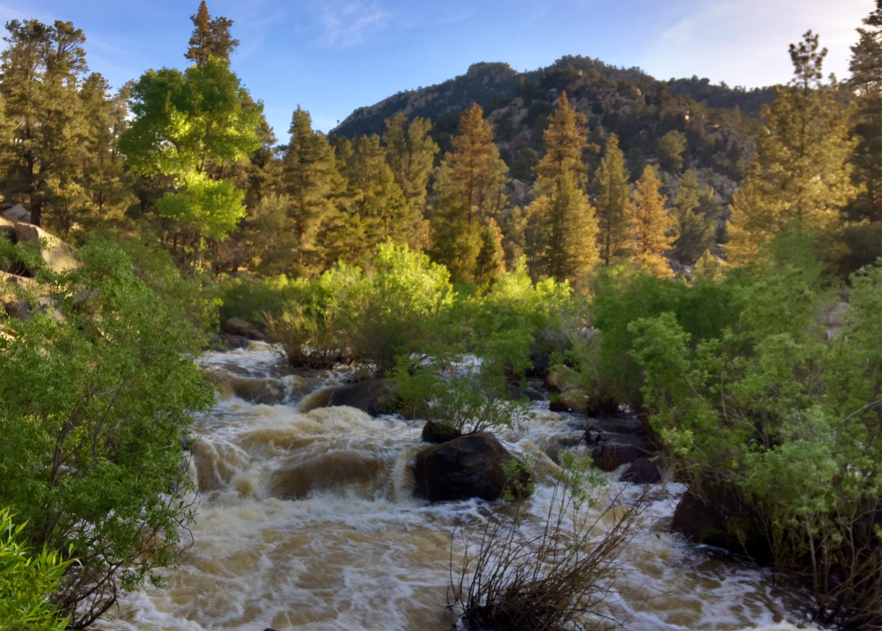 The Kern River is running strong…luckily, no fords today. The water is freezing. I stick my feet in at lunch to clean them off and I could last about 15 seconds per foot.