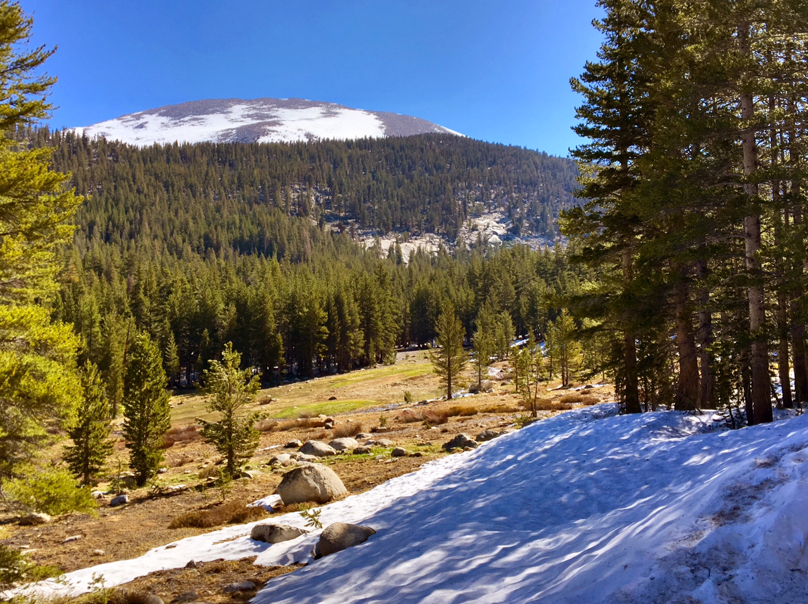 Starting to see more and more snow on trail. A function of elevation and aspect (to the sun).