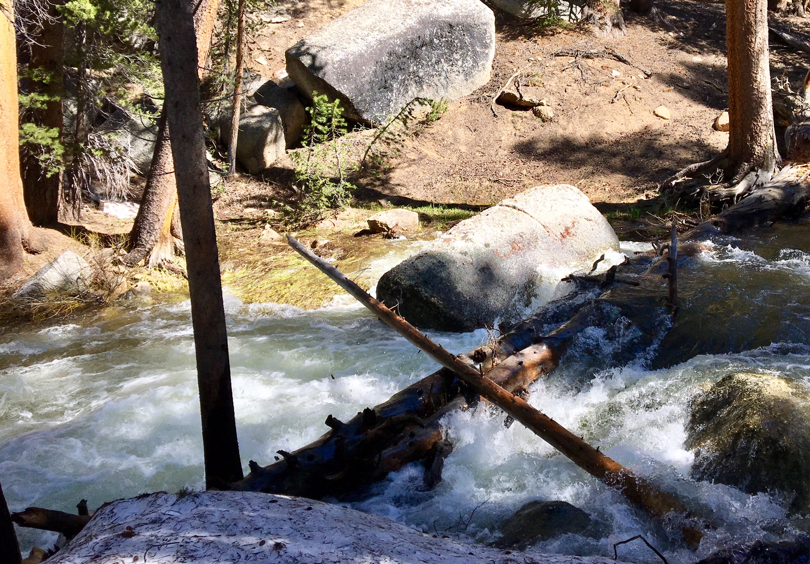 Sketchy log crossing #3. I was thankful to find this log a 1/4 mile downstream. I did not take a picture of the wet-crossing I made a mile before this. Luckily, the sun was out and there were some warm rocks to lay out on. These aren’t even the big crossings yet