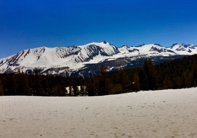 After a long day of slogging through the snow, constant navigation to stay on course, four stream crossings, I then had to find a snow free place to camp…not so easy. This small outcropping at 11,400′ would have to do. Not even a big enough flat area for my tent….