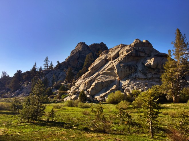 The day started out normal enough. Dry sandy trail, some big pines and interesting rock formations….