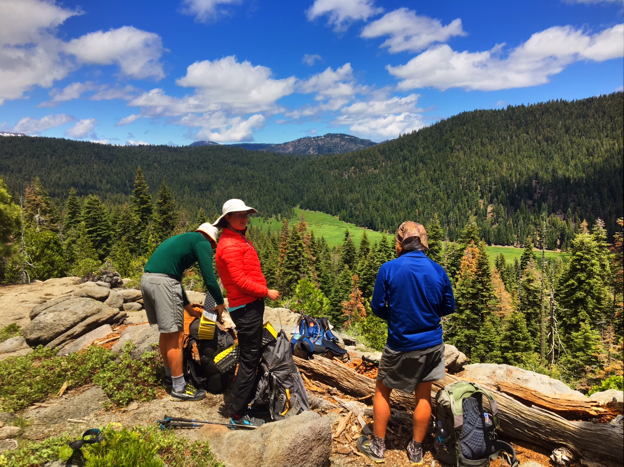 Gearing up at the trailhead. A beautiful Northern CA forest with giant trees.