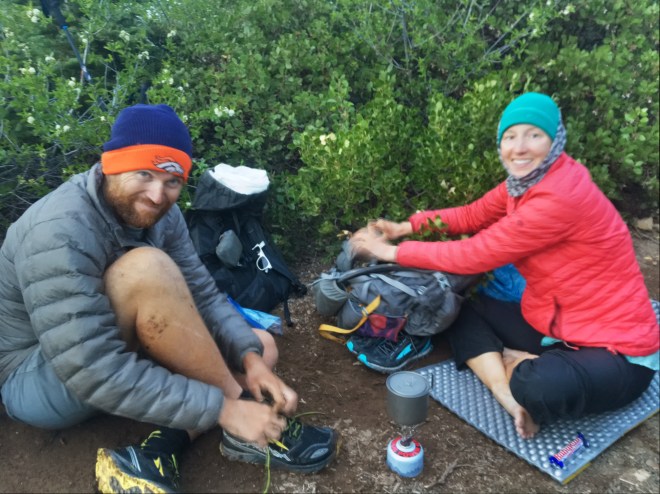 LoBro made it to camp about 8:30 and were happy to see this great (flat and dry) little camp spot. I think we are all starting to suffer PTSD (post traumatic snow disorder) every time we hit the snow.