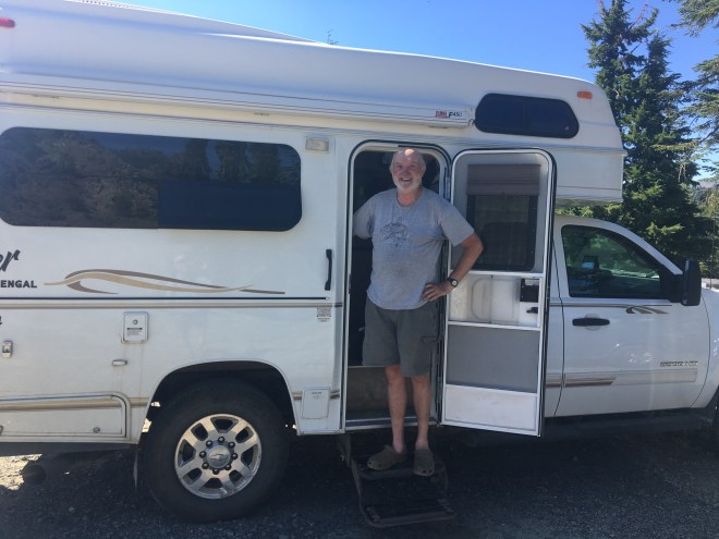 After running around: eating, resupply, laundry, etc I was offered a place to stay/shower at a local trail Angel’s place….a converted garage. This is Names from the U.K. enjoying the free wifi.