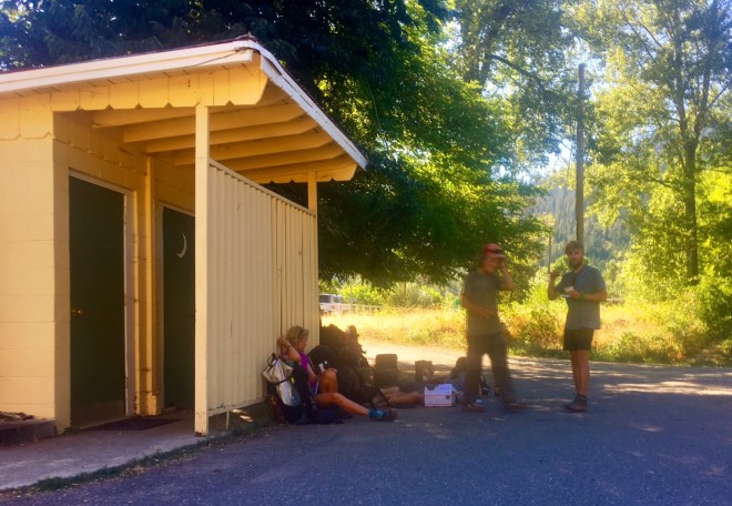Hikers waiting out the late day sun outside the Seiad Valley Store before climbing 4000′ up. I opted to call it a day and camp at the RV park next door.