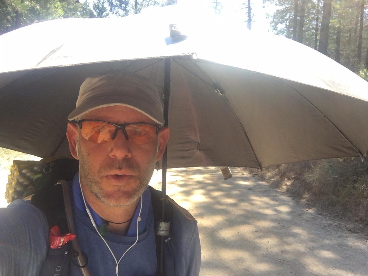 Fighting the heat and sun on the road walk.