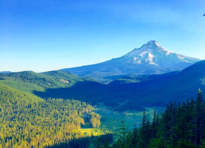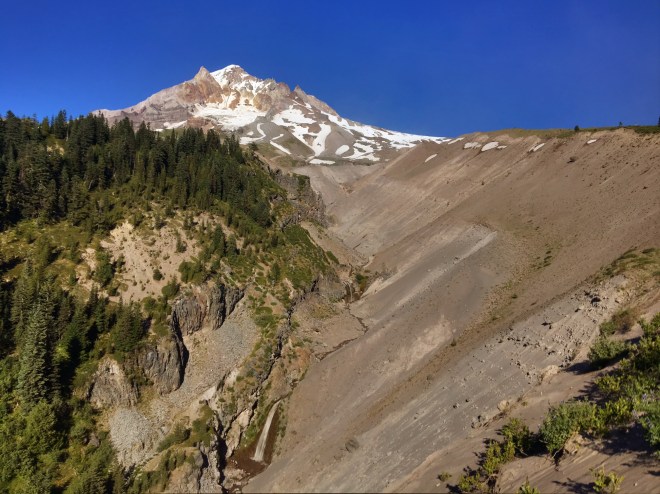 The scale of the Mt. Hood area is awesome. Notice the waterfall at the bottom? That is prob about 150′ tall.