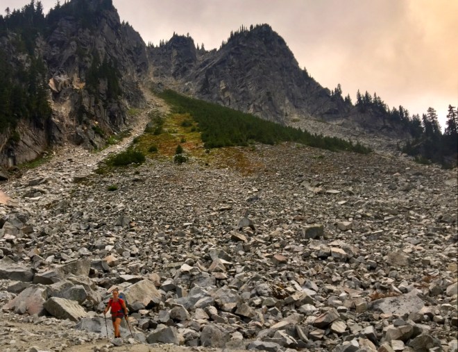 We “only” did 6500′ of climbing today. The final decent was through this giant scree field.