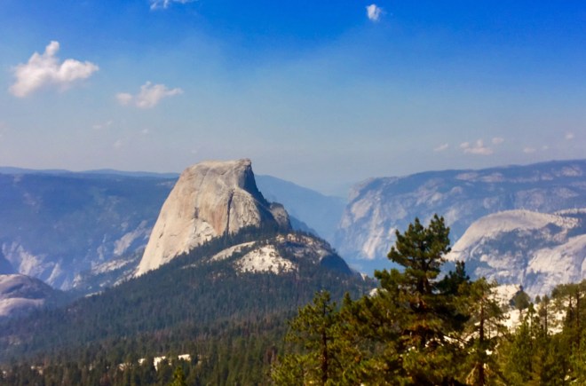 The Butcher and I walked out to the road around 7:15am to hitch a 10 mile ride to the Tenaya Lake trailhead. It took about 45mins to get a hitch (not much traffic) from a nice German couple. Our hike would take us over Clouds Rest (~10,000′) which would give us one of the best views of Half Dome anywhere in Yosemite. Clouds Rest is about 1000′ higher and only a couple miles away.