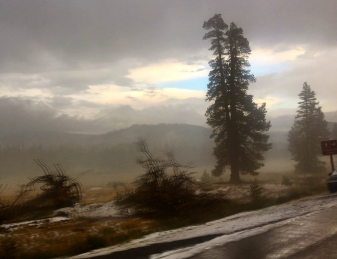 The skies cut loose on the 1.5 hour drive back to Tuolumne.